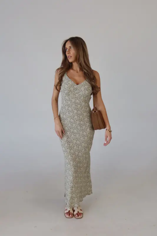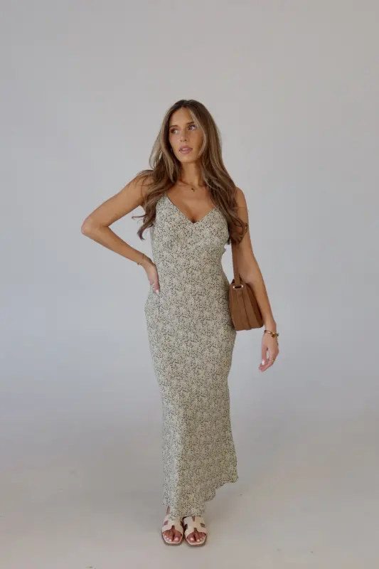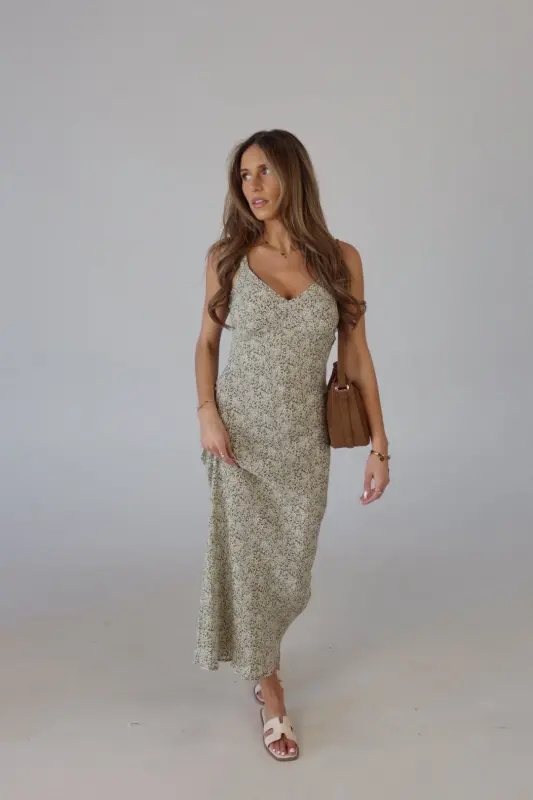 The Dahlia Floral Midi Dress is a dreamy slip dress crafted from a lightweight material, making it perfect for warm weather. Featuring a stunning floral pattern in olive, yellow, and white, this dress exudes a fresh, springtime vibe. The adjustable straps ensure a customizable fit, while the relaxed, effortless silhouette offers comfort and style. Whether you're attending a wedding or heading on vacation, the Dahlia Floral Midi Dress is the perfect choice for effortless elegance and seasonal charm.