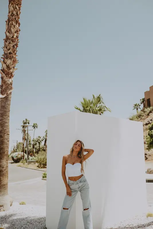 Our Strapless Structured Mesh Bustier is a fitted bustier crop top. This top has boning throughout to keep its structure. The back has a zipper closure. This top is LINED.